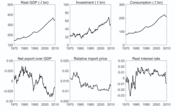 How does our test work? Economists widely use tests of forecasting fit to the data over the sample- asking how well the model’s determining variables can ‘now-cast’ the data – e.g. GDP. The closer the fit of the now-cast the higher the likelihood of the model; if the probability exceeds some threshold such as 5%, the model is accepted. The problem with this test in small samples such as we have in macroeconomics is that false models can easily pass it because the false model’s past errors can predict future data almost as well as the true model. Hence the test has low ‘power’- that is, it rejects few false models.