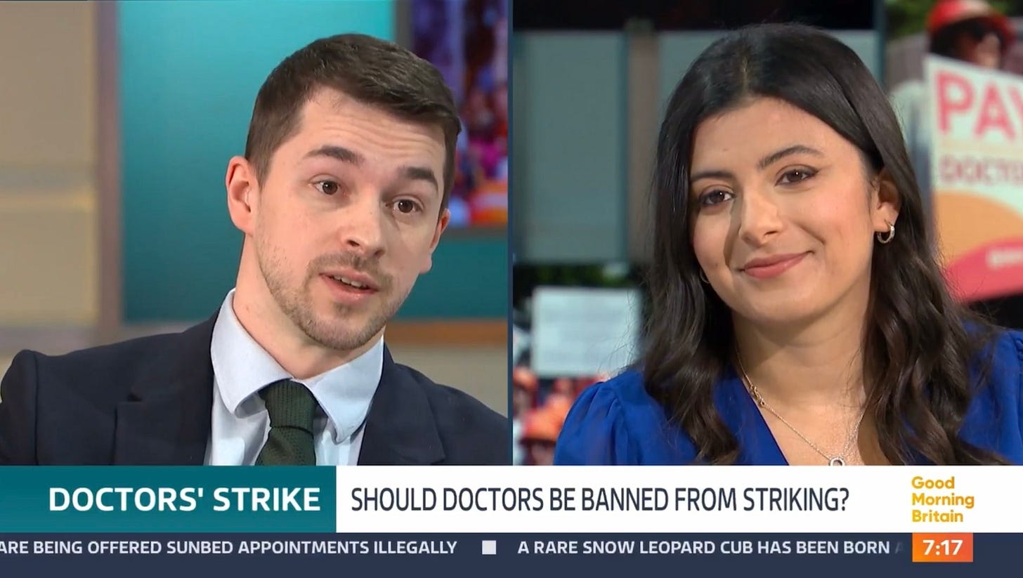 Communications Manager Reem Ibrahim appeared on Good Morning Britain to discuss the threat of industrial reaction from junior doctors, ITV Good Morning Britain