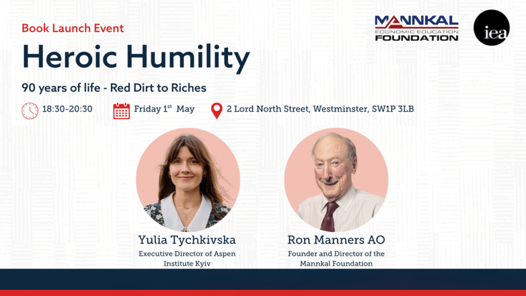 Ron will be interviewed by Yuliya Tychkivska, Executive Director of Aspen Institute Kyiv, on his humble Kalgoorlie roots and founding of Croesus Mining, to launching the Mannkal Economic Education Foundation, Ron reflects on entrepreneurship, liberty, and key global events, embodying heroic humility in leadership and philanthropy.