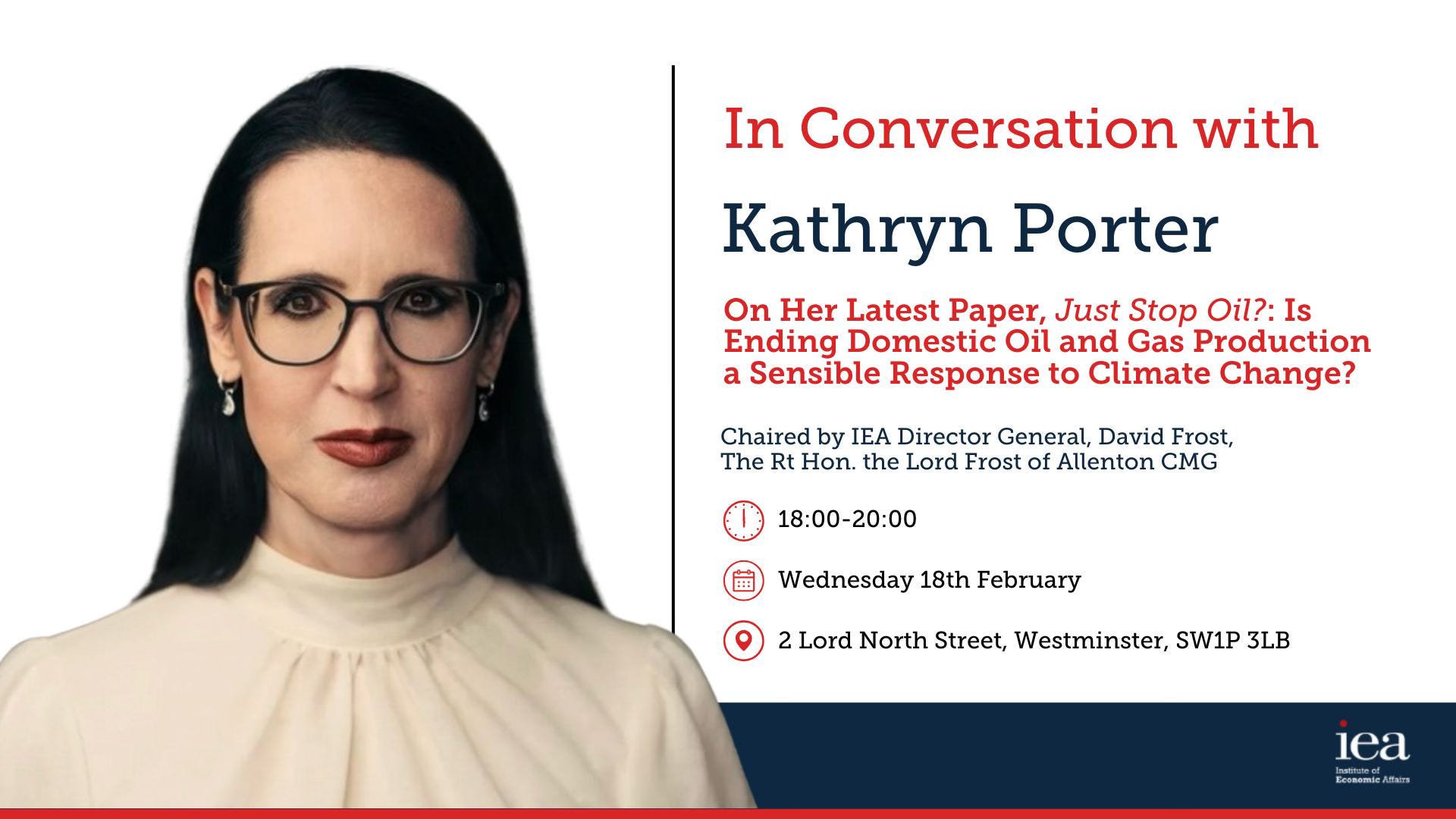 Title: In Conversation with Kathryn Porter on her latest paper, Just Stop Oil?: Is Ending Domestic Oil and Gas Production a Sensible Response to Climate Change?
