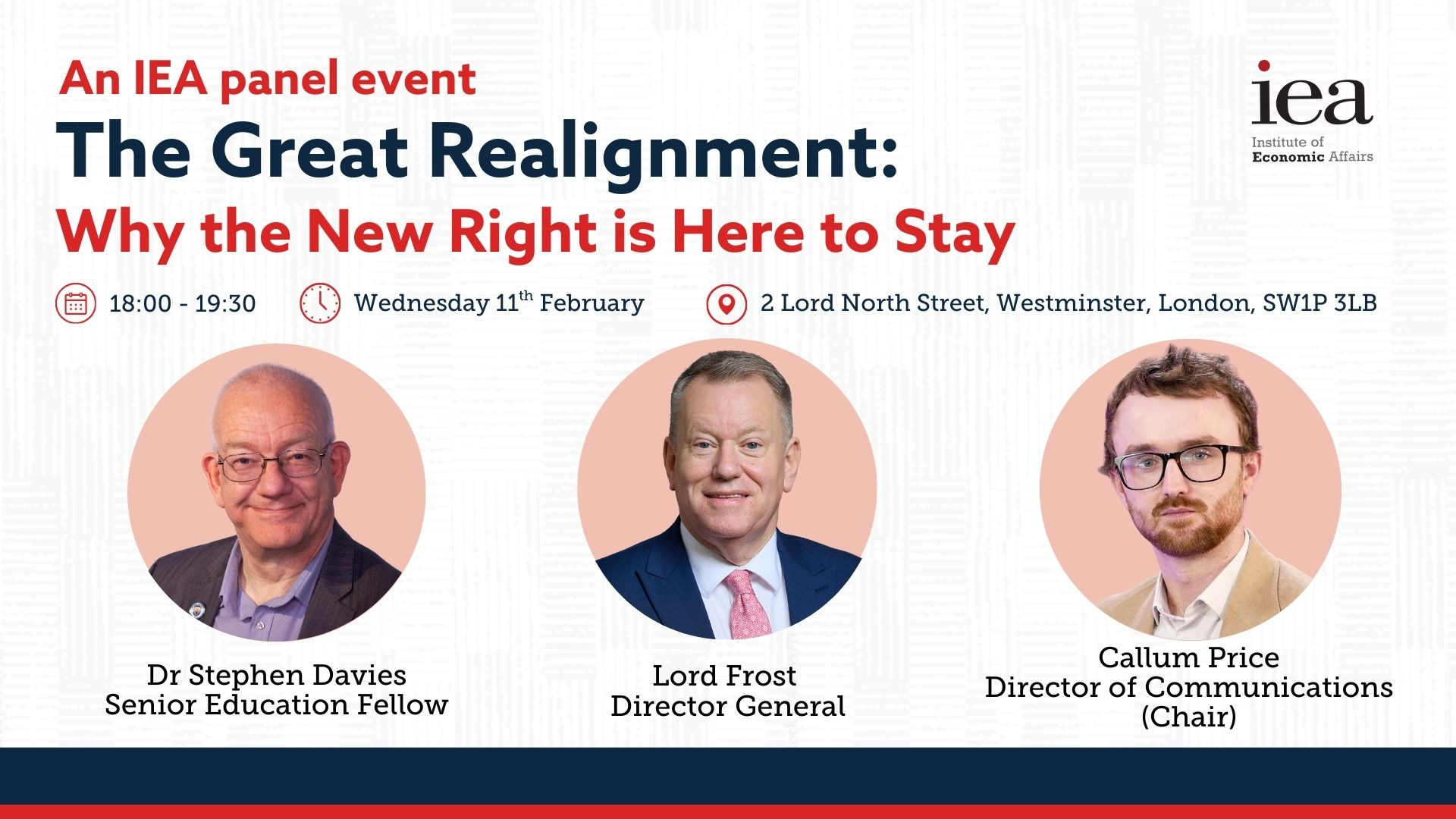 To mark the publication of Dr Steve Davies’ new book The Great Realignment - Why the New Right is Here to Stay, we are hosting a live IEA Podcast to delve into Dr Davies’ thesis about the great realignment in British and global politics.