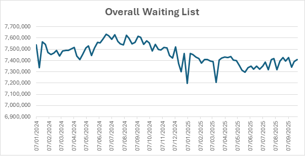 In the 14 months since July 2024, the waiting list has further reduced to 7,406,648, a reduction of 181,000 incomplete pathways or only 2%, despite this being a key government goal.