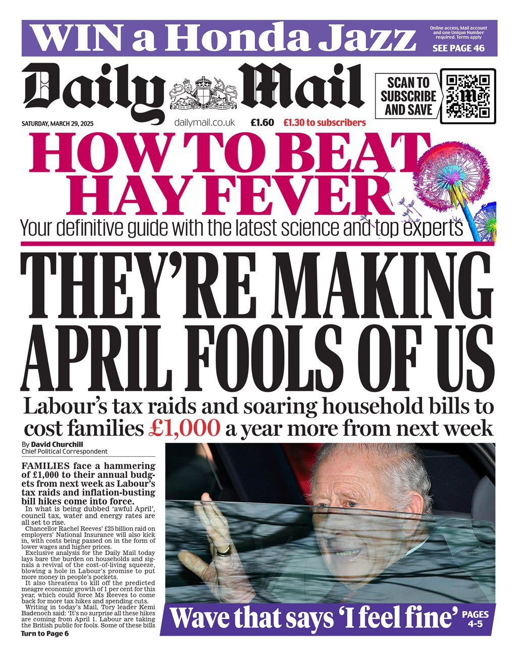 Analysis by Policy Engine for the Institute of Economic Affairs illustrated how the average cost of the coming tax rises on households will exceed £1,000 per year – and made the front page of the Daily Mail
