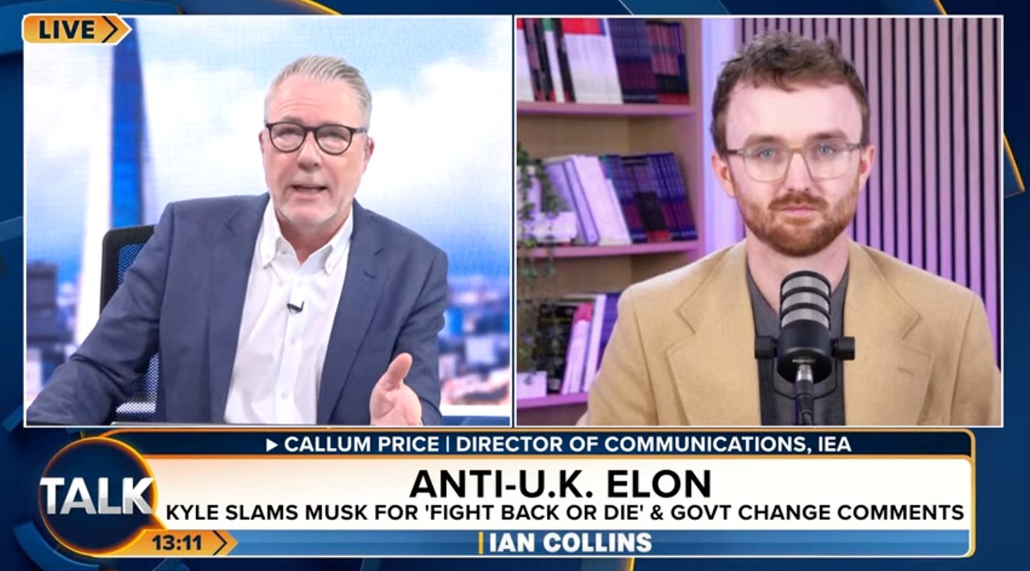 Director of Communications Callum Price appeared on TalkTV