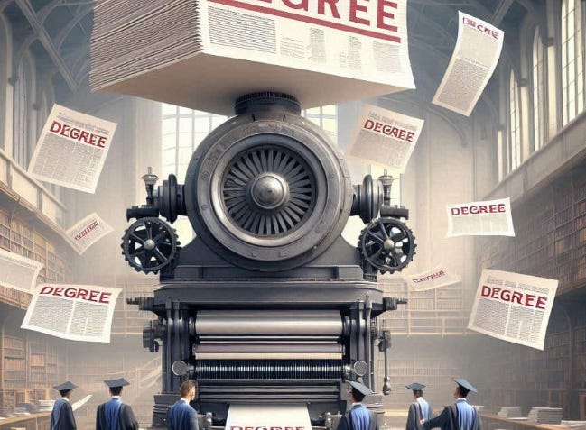 UK universities were once heralded as the beacons of intellectual excellence, places where ideas were rigorously tested and where students emerged intellectually fortified, ready to face the world. Today, however, too many institutions have neglected that mission, prioritising revenue streams and inflated performance indicators over academic integrity. Driven by tuition fees—especially from international students (that account for 40% of English university revenue)—these institutions are increasingly at risk of becoming “degree factories,” focused on financial targets over genuine intellectual growth.