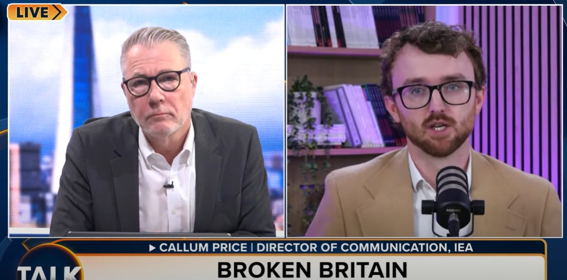 Broken Britain?, Director of Communications Callum Price appeared on TalkTV